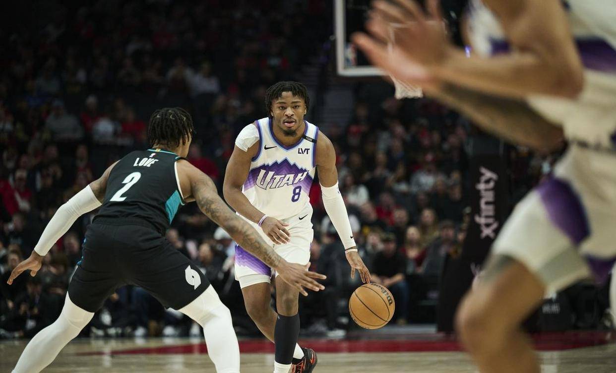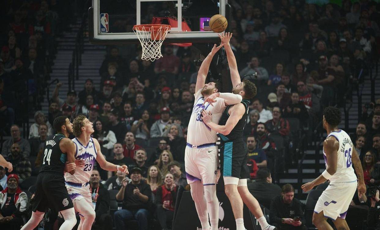 比赛从一开始就失去了悬念。 开拓者首节轰下36分,单节8记三分球像连珠炮一样砸向爵士篮筐。 夏普和阿夫迪亚的手感热得发烫,卡马拉和乐福的外线火力全开,爵士的防守在他们面前形同虚设。