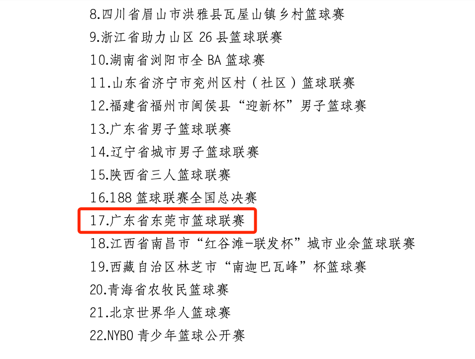 与此同时,东莞也以篮球赛事持续赋能城市形象提升。2022年,正值东莞市篮球联赛成功举办20周年,东莞市篮球联赛纳入“潮流东莞·篮球城市”东莞篮球城市文化节之篮球系列赛板块,升级东莞市联赛品牌形象为“DGBA”,社会关注度进一步提高。通过东莞市篮球联赛的举办,东莞深挖篮球文化,进一步擦亮“全国篮球城市”名片,为东莞加快建设文化强市、体育强市,在“双万”新起点上加快高质量发展贡献体育力量。