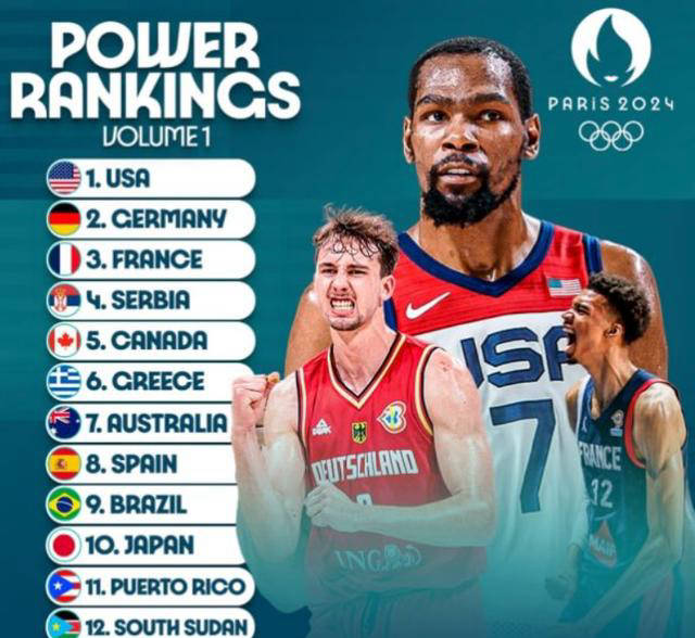 夺得2023年男篮世界杯冠军的德国男篮排名第二。他们的世界杯胜利极大提升了球队信心,施罗德和瓦格纳兄弟等主力球员将悉数出战奥运会,德国队实力不容小觑。