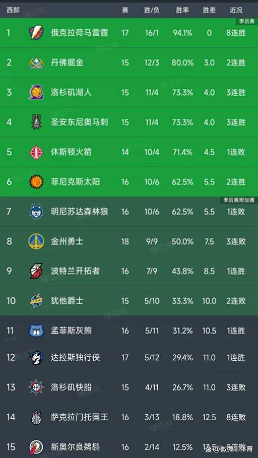 与此同时,菲尼克斯太阳队在本赛季休赛期送走了杜兰特,加上格林受伤,外界一度不看好其前景。然而,他们却在今日以114-113的一分之差险胜明尼苏达森林狼队,取得两连胜,以10胜6负的战绩暂列第六位,而森林狼队则暂居第七。