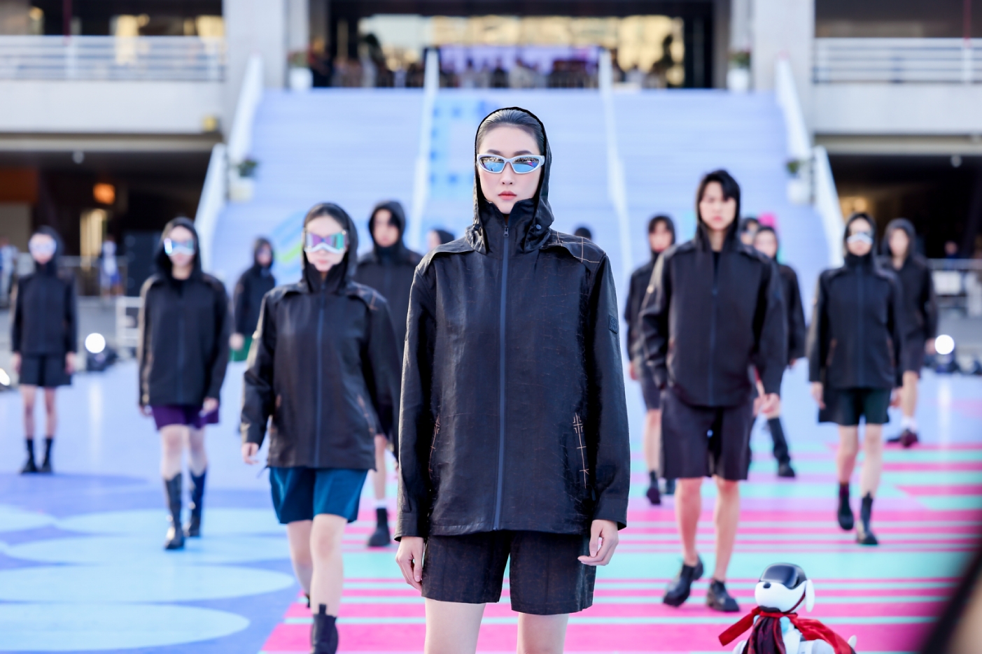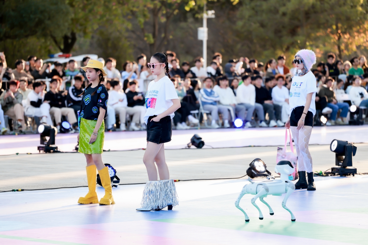 整场展演构思精巧,以“冠军织旅”“韵动互联”“有为青年”三大篇章循序推进,层层递进地展现了广工学子的创造力与表现力。第一篇章“冠军织旅”以非遗香云纱与科技元素机器狗的创新融合,展开了一场时尚科技与传统文化的完美对话。