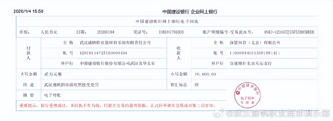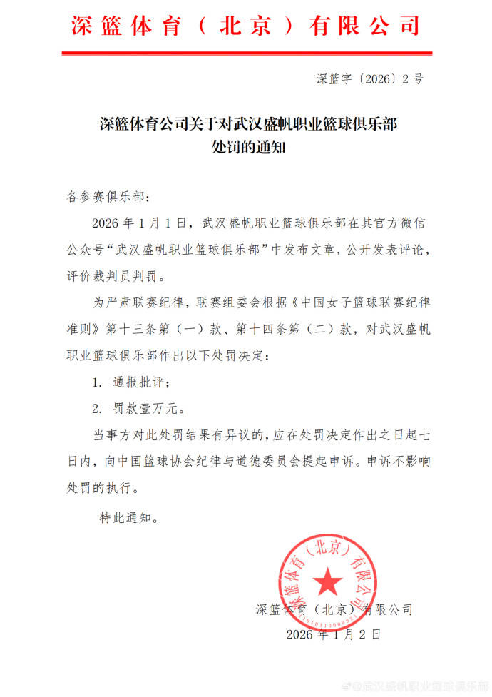 2026年1月2日,深篮公司作出处罚决定,以“公开评价裁判”为由,对盛帆俱乐部处以通报批评 1万元罚款。令人意外的是,俱乐部次日便直接转账2万元,还附上“欣然接受处罚,继续罚不还口”的声明。这波“加倍交罚款”的反向操作,瞬间点燃网友热情,被解读为最体面的抗议:我遵守你的规则,但绝不认同你的判罚。