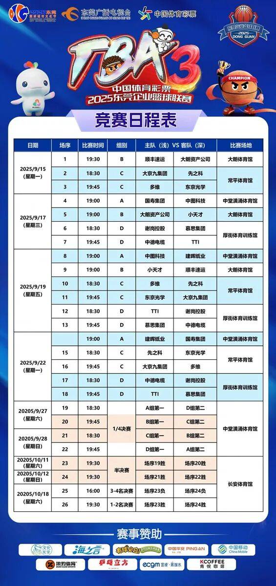 小组赛将于9月15日至22日在常平、厚街、大朗、中堂四大赛区举行;四分之一决赛于9月27日至28日在中堂进行;决赛阶段将于10月11日起在长安体育公园举行,届时将决出最终冠军。