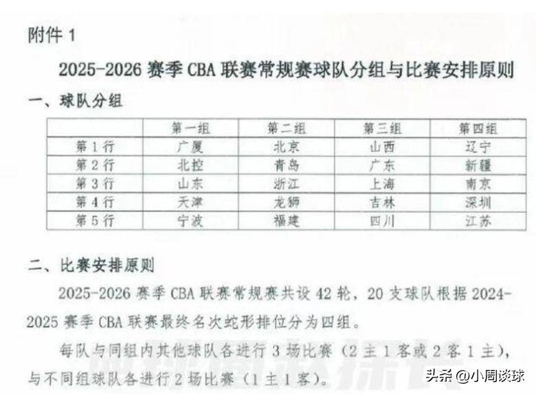 本赛季常规赛将进行42轮较量,20支参赛球队被平均分配至4个小组。分组依据上赛季季后赛最终排名进行科学编排,确保每组实力相对均衡。具体赛制安排为:
